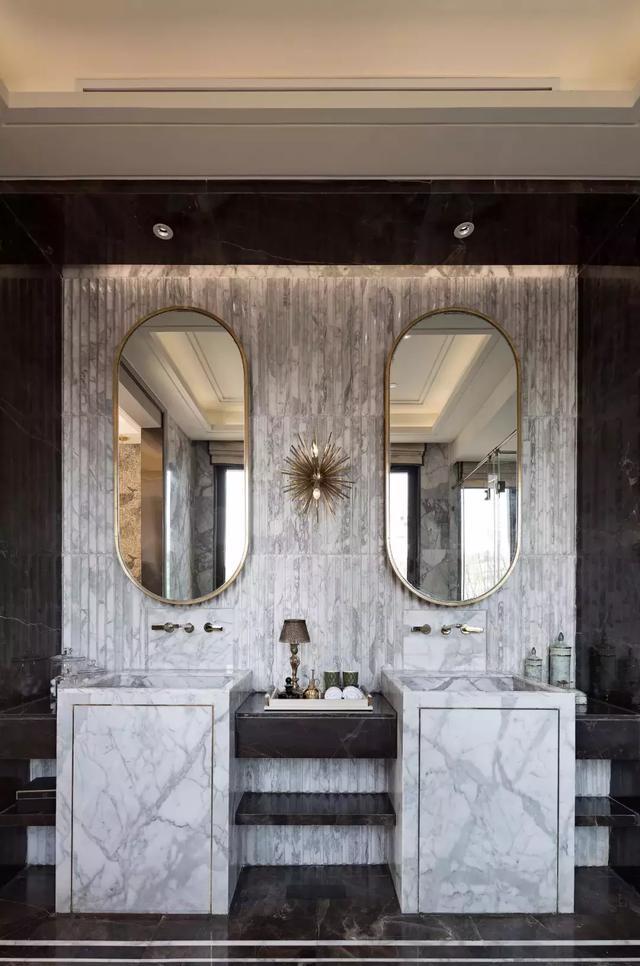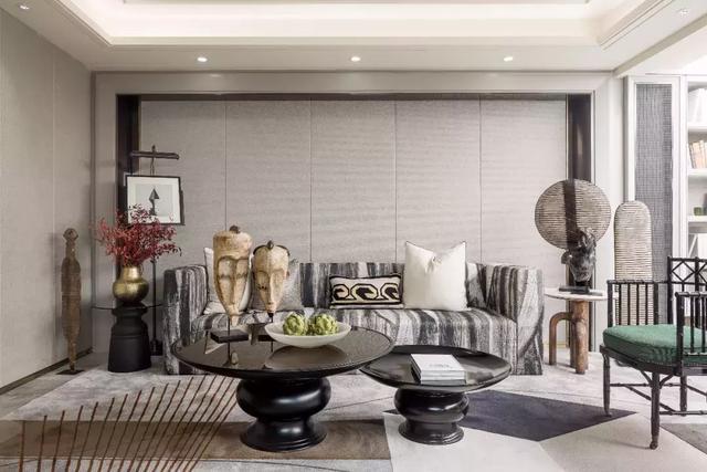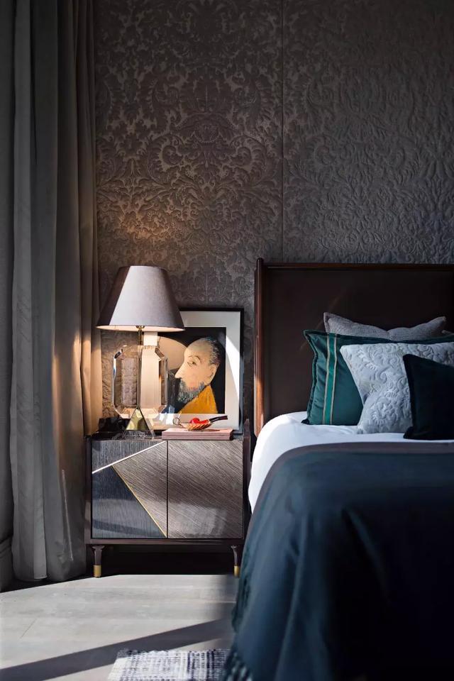 進入客廳,宛如感受了現代與上世紀初巴黎藝術風格在此邂逅。黑白條紋與墨綠色的共舞,在重復、漸變的美學法則下,構成空間充滿張力的對話。空間的歷史感,通過現代時尚家具的演繹,從古典氛圍中拉回現實,完美的過渡與融合展示出獨具匠心的優雅格調。