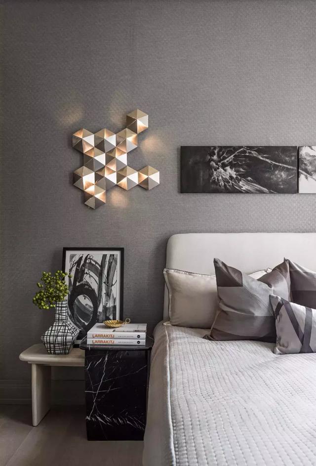 色調中金色點綴著灰色,整個空間沉穩又不乏時尚。細膩質感勾勒出的幾何線條,沉溺在陽光的溫度下,與幾何裝飾共舞,那是夢想照進現實的生機盎然。