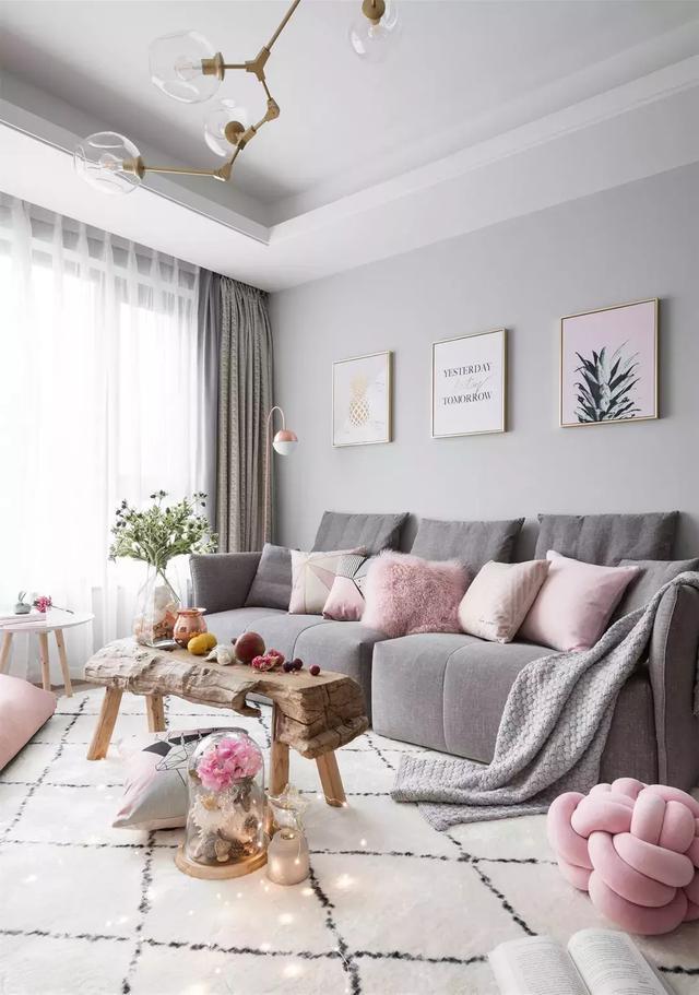 灰色和粉色配搭在一起,有一種優雅的感覺,而又不失少女心,粉色系家居將甜美和青春感融入生活和夢里。