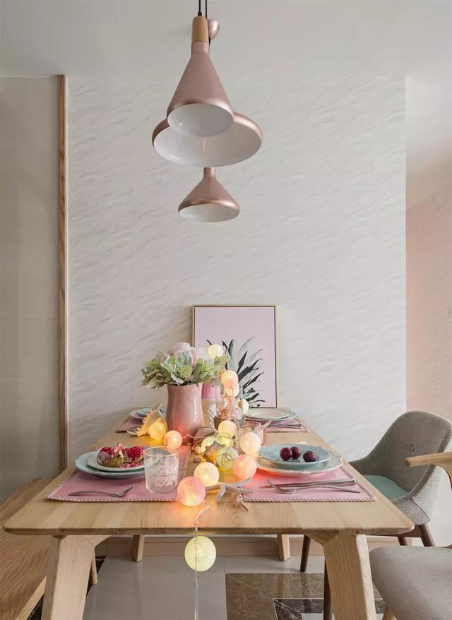 粉色,浪漫甜美,充溢著濃濃的暖意,從純真的淺粉到嬌魅的深粉,款款誘人。高級灰低調內斂,優雅迷人。兩種色彩在溫柔明麗的空間里不期而遇,一個生動嬌俏,一個雅致寧靜,正如交響樂高低音的完美融合,使整個空間層次更加豐富而錯落有致。