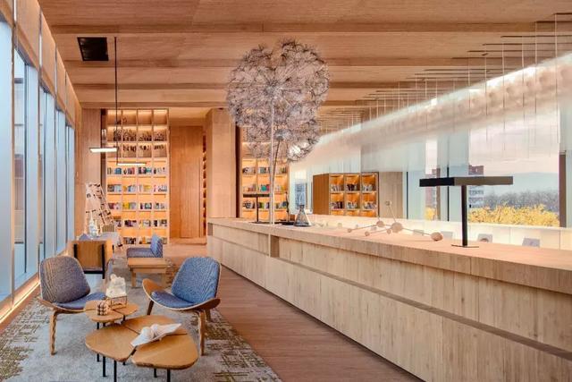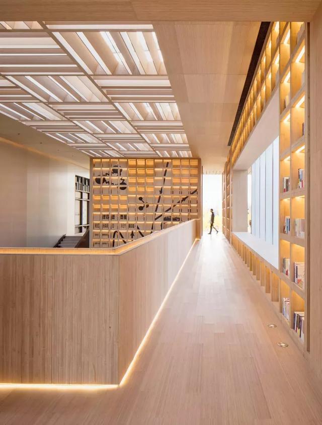 光自通透的玻璃窗折射而下的光影變換,天花與地面、墻面的裝飾盡是原生態(tài)竹木,素樸的木色溫暖而澄明,在此漫享閱讀之趣,恍若倏忽間穿越到記憶里的象牙塔時代,校園里的青蔥爛漫如影片般一一閃現。
