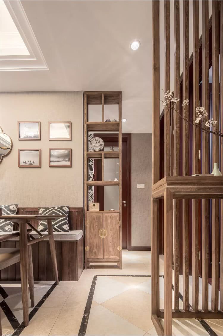 玄關隔斷:玄關作為入戶第一眼看到的空間,決定著進入門后的情緒感受。玄關隔斷需注意以淺色系配色為主,隔斷的設計可避免公共區(qū)域處一覽無遺的狀態(tài),無形中增加空間趣味性,且保護主人隱私。