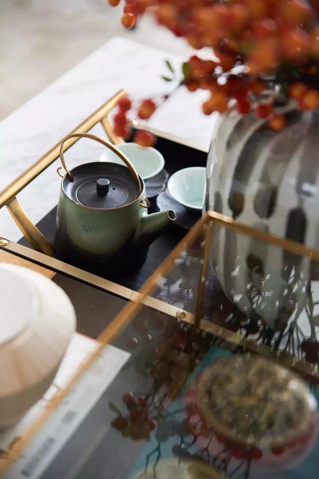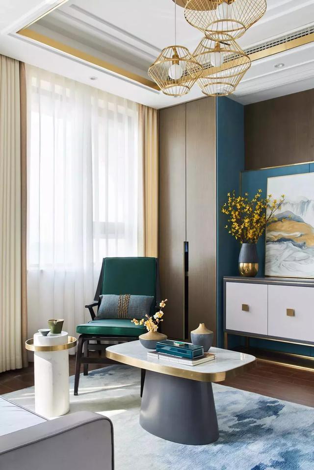 由玄關(guān)處進(jìn)門可看見,鑲有金邊的透明清玻將整個(gè)空間分為客廳和書房?jī)蓚€(gè)區(qū)域,即區(qū)分了空間,達(dá)到空間的多個(gè)利用,開放式的書房設(shè)計(jì)又不會(huì)顯得擁擠。這是對(duì)傳統(tǒng)元素的解剖,更是對(duì)時(shí)代需求的詮釋。