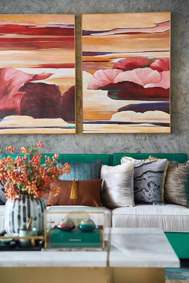時(shí)尚優(yōu)雅是東方生活美學(xué)的基調(diào),本項(xiàng)目在整個(gè)空間設(shè)計(jì)中,燈光色調(diào)為暖色調(diào),再運(yùn)用純粹綠和藍(lán)的跳躍、點(diǎn)綴中國經(jīng)典的紅色,纖細(xì)的金屬條為單調(diào)的背景增添了整體又豐富的視覺體驗(yàn)。