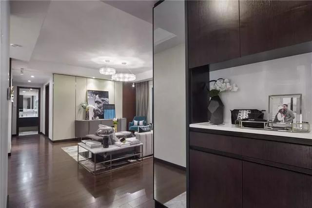 入戶玄關(guān)的壁柜、餐廳壁柜、主人房的大衣帽間,這些很好的收納空間,把生活所需雜物一一安排到位。