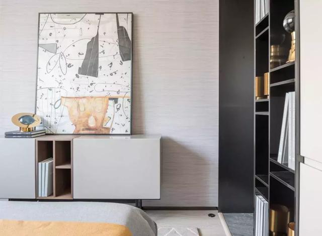 在主臥套房內打造具有獨立衛生間、書房及強大衣帽收納系統的整體功能,體現出生活的高品質需求。整體空間配以考究的家具、精致的飾品合理的擺放,呈現出為注重生活品質和格調的精英人士所定制的居家環境。
