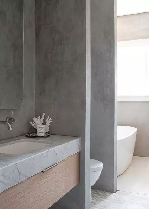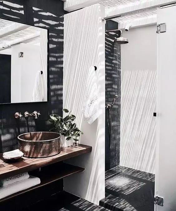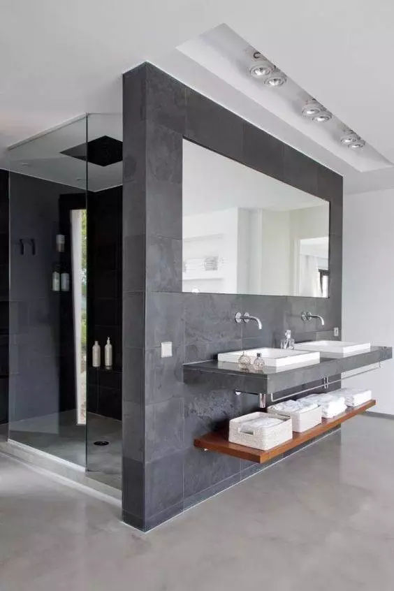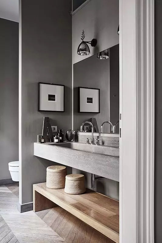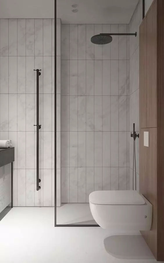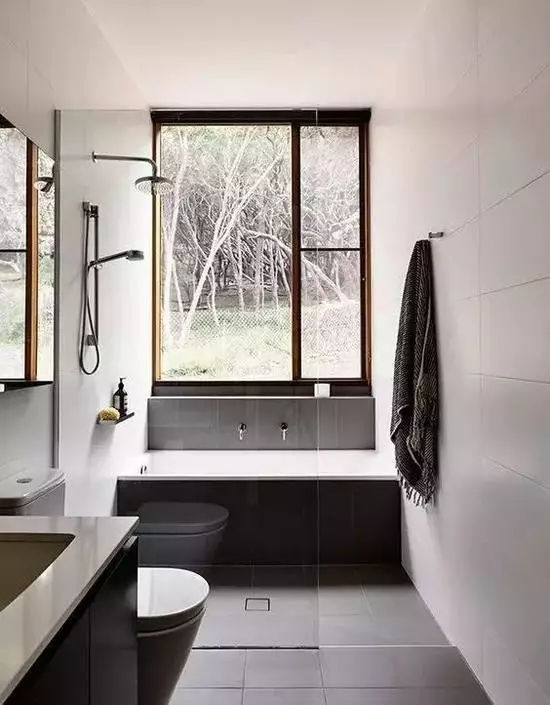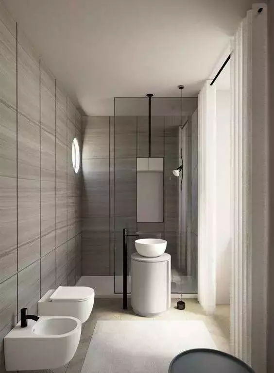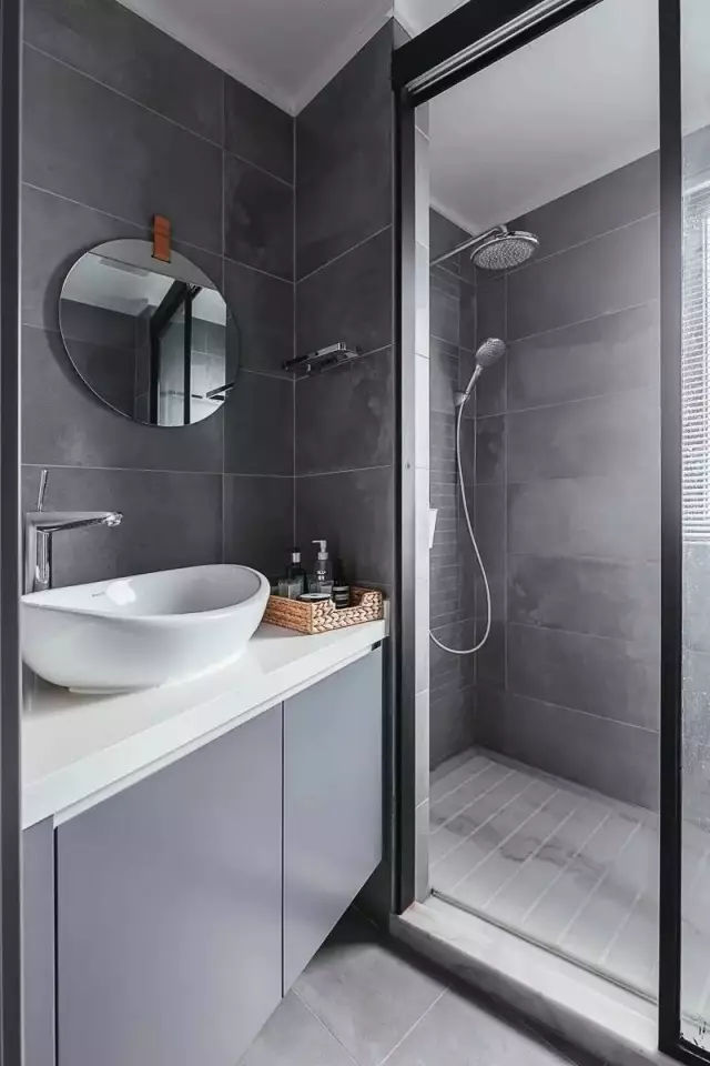 在干濕區之間砌一堵實墻,阻擋水花四濺,這種做法保持了衛生間隔斷效果;雖然不那么美觀好用,但卻是最耐用的干濕分離設計。