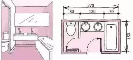 把浴盆、洗臉池、便器等潔具集中在一個空間中,稱之為兼用型。這種方式在家庭很常見,最大化的利用空間。