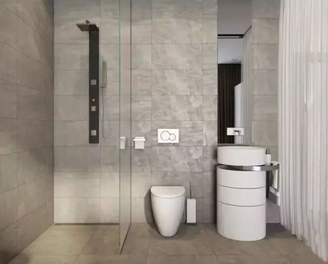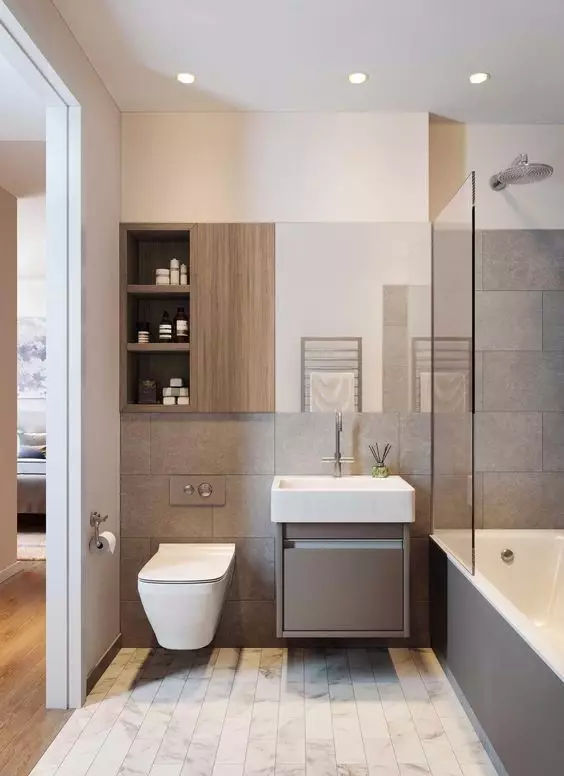 衛生空間中的基本設備,部分獨立、部分放到一處的情況稱之為折中型。這樣的布局方式相對節省一些空間,組合比較自由。