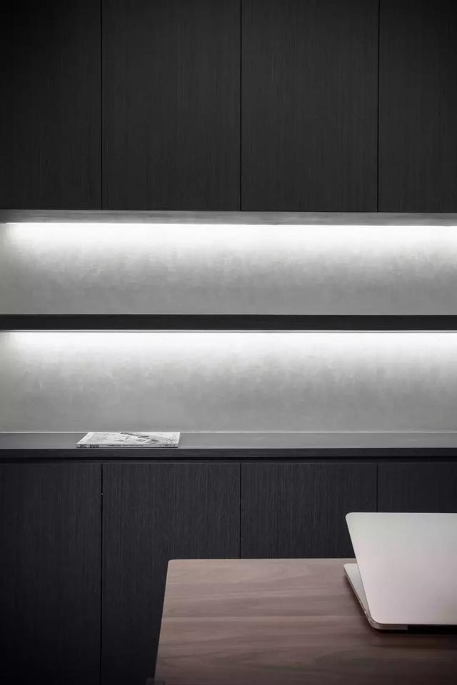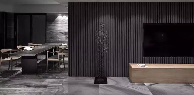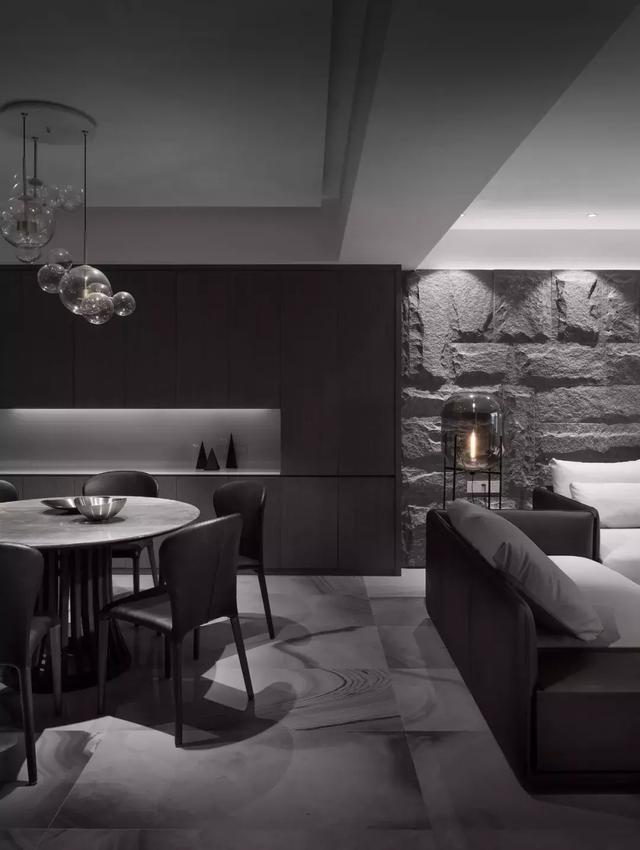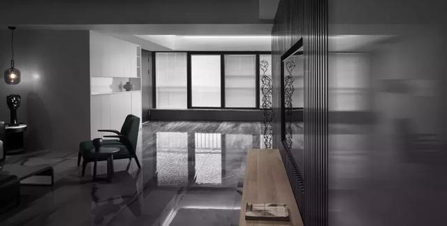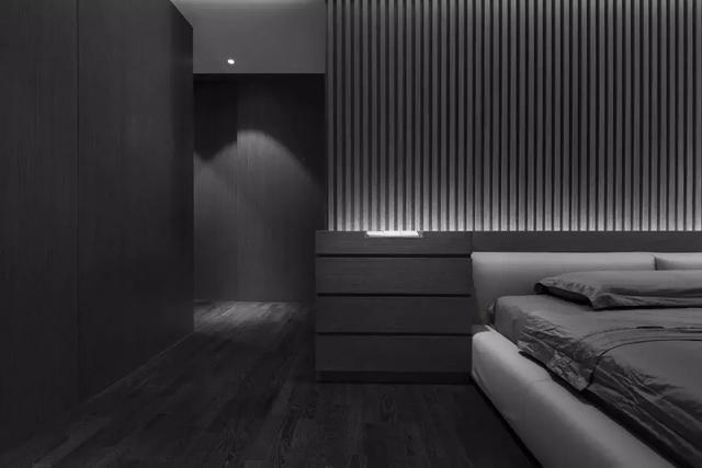 黑色貫穿了各個生活空間,沉靜、含蓄地氛圍能撫平心中的焦慮,讓人慢下來去審視內心。黑色具有神秘魅力,暗藏內在力量,賦予人探索未知的勇氣。黑色的墻壁端莊、典雅,猶如舞臺的室內背景。