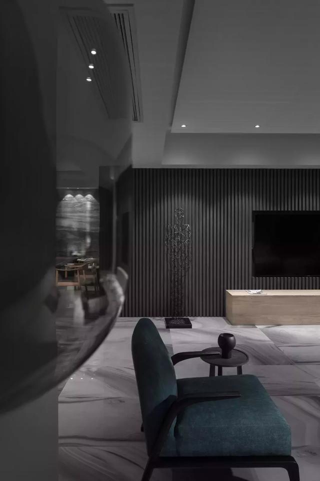 本案周圍的住宅裝飾以豪華為主,而設計師在與業(yè)主溝通后,以高級、內斂的手法做出新的嘗試,以質感源作為設計中心,試圖通過不一樣的質感來傳達業(yè)主對生活原始狀態(tài)的渴望,讓其回歸到舒適、自然的居住環(huán)境。