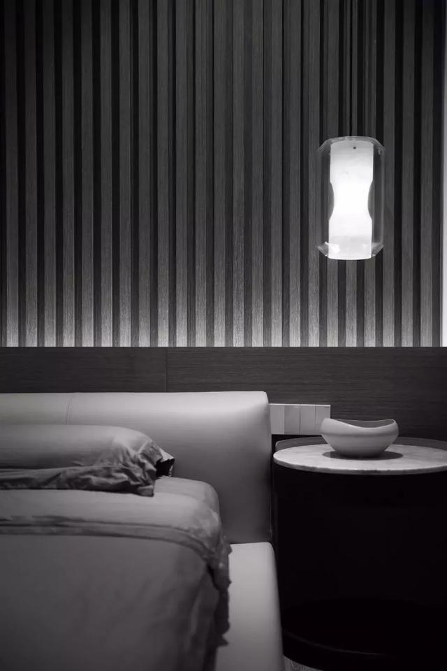 臥室的設計簡約、精致,體現(xiàn)安靜、純粹的狀態(tài),背景的木材與公共區(qū)域的木質感相互呼應,強調設計的整體性。空間中的細節(jié)在不經(jīng)意間展現(xiàn)著人文關懷,同時又營造了具有質感的格調。