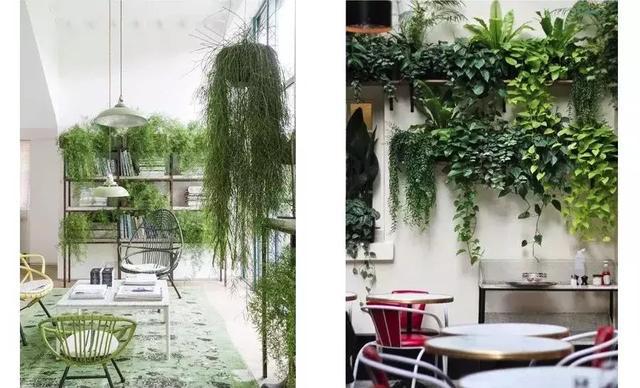 在墻面種植攀爬或垂吊的藤本植物。這種形式的綠植墻比較常見,一般會出現在房子外面的墻面上,綠意盎然,別具一格的韻味。將其形式用于屋內,也別有一番風味哦!一般會選擇爬山虎、絡石、常春藤、扶芳藤、綠蘿等植物,這類綠化形式簡便易行、造價較低、透光透氣性好。