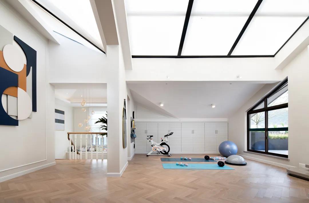 Immediately, our sight came to the second floor, and at a glance, the interior has broken the convention in terms of the layout of functions, and boldly used a large area to demarcate the lounge, fitness area and balcony, combining the open exterior scene with the skylight above the head, the entire space The incomparable atmosphere makes people"s eyes bright and suddenly enlightened.