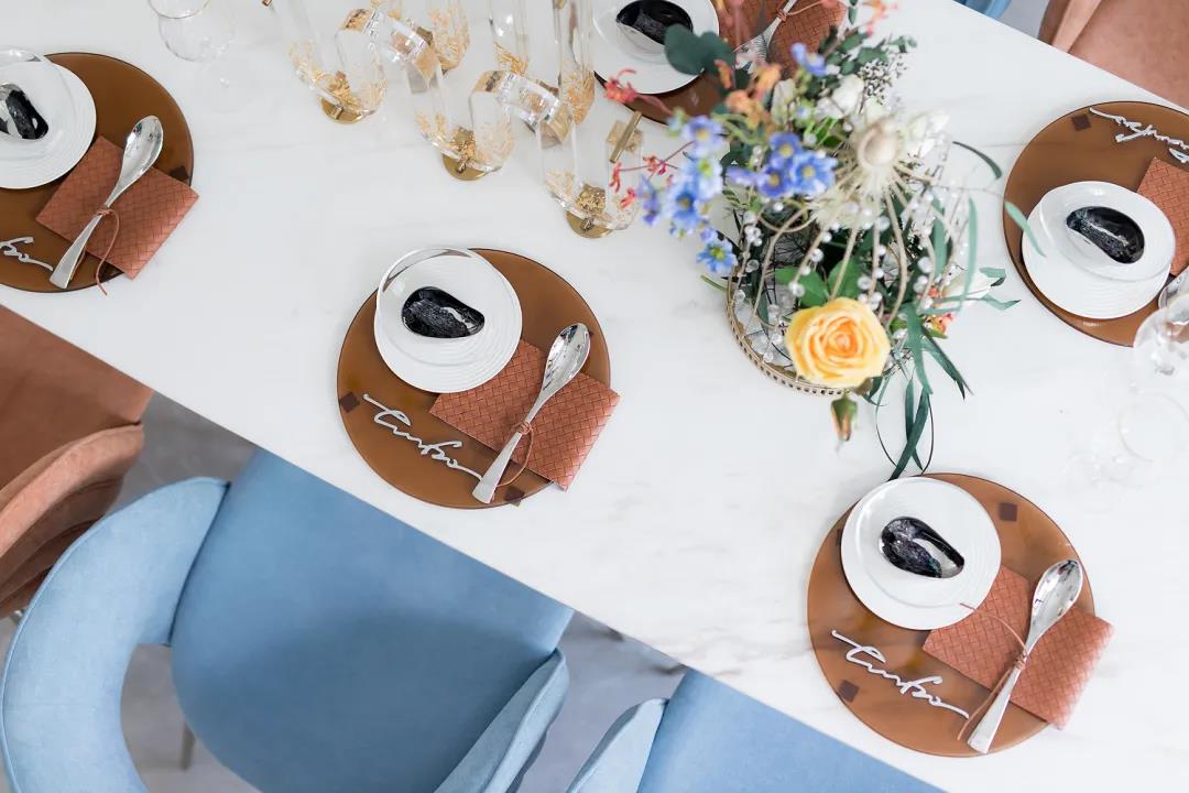 WΛMI運用這一理念,打造了位于廣西彰泰的315㎡頂層復式住宅。用優雅與精致奢華的橙藍金撞色來營造法式調性住宅的浪漫與“輕”生活慢享格調。