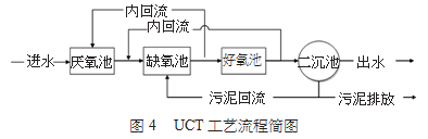 與 A2/O 相比,混合液和污泥均先回流到缺氧池,有效防止硝酸鹽氮和氧氣直接進入厭氧池,再通過內回流從缺氧區回流至厭氧區,為厭氧段提供了最優的環境條件。其流程見圖 4。