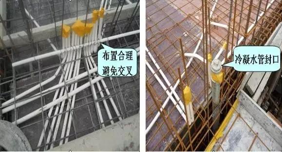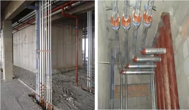 左:給排水管道的墻體暗埋管均彈出墨線后進行敷設,整齊美觀