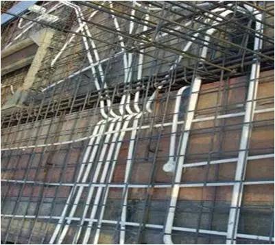 > 2.3套管安裝主體結(jié)構(gòu)鋼筋綁扎好后,按照深化設(shè)計圖標高幾何尺寸找準位置,然后將剛性防水套管置于鋼筋中進行加固。