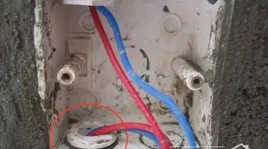 這是在各裝修工地非常常見的情況。有時因為穿線管不夠長,在與接線盒連接的時候,中間會有一小截電線裸露。正規的做法是,當出現這種情況時,使用杯梳擰緊固定,嚴禁導線裸露在外。