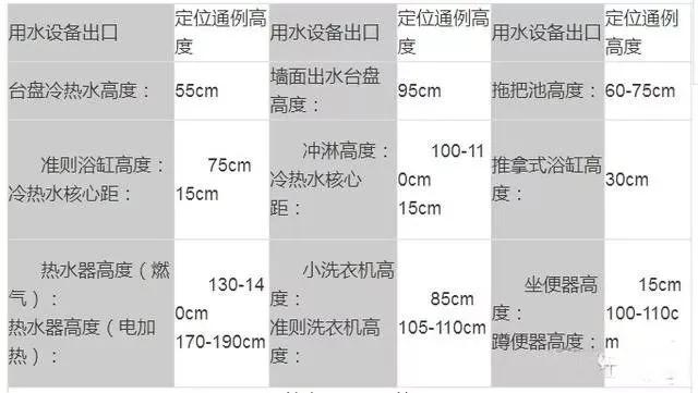 在不同的地方安裝水電,所需要的尺寸也是有講究的: