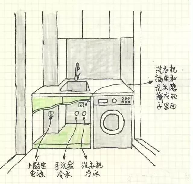 陽臺的插座就為普通的五孔插座就好,掛壁式的mini洗衣機則需要在高處預留一個插座。