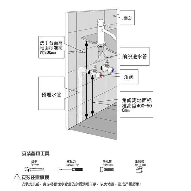 3、如今的各類進水軟管都是與角閥對接的,接口通用,安裝水龍頭也將十分方便。