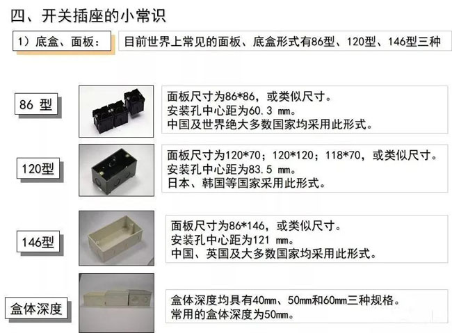 7)開關接線:“火線進開關,零線進燈頭”;插座接線:“左零右火,接地在上”。
