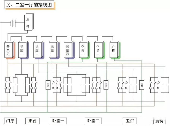 5)在整個線路中,燈具、空調、插座、供暖等應各走單獨的回路。
