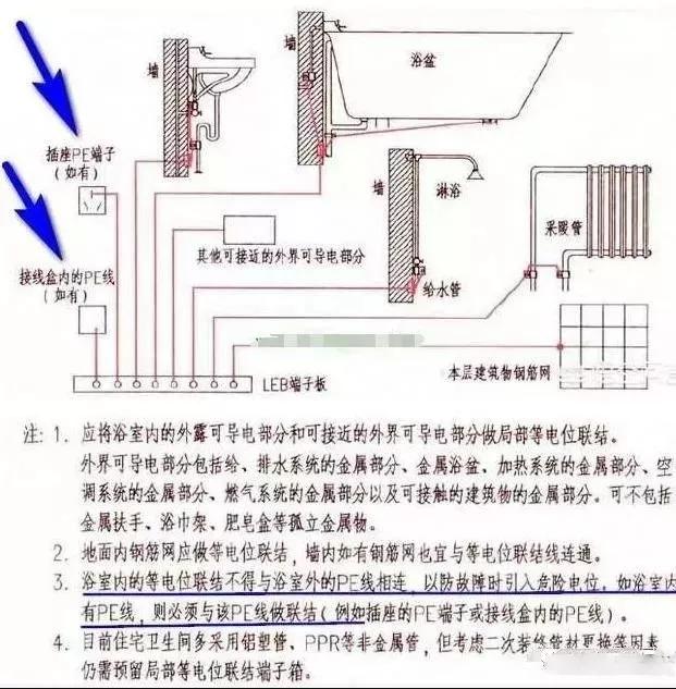 如果衛生間內插座PE線與衛生間外的PE線進行了連接,那么這跟引入衛生間的PE線一定要接入衛生間內的等電位端子盒。