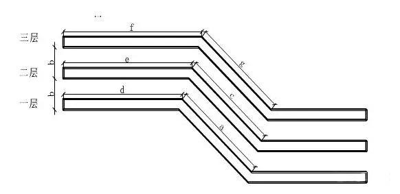 橋架45°上下爬坡彎制作以及計(jì)算公式目前電建施工中所使用的電纜橋架彎頭一般是由電纜橋架廠在出廠之前完整加工好的,但是由于施工現(xiàn)場情況各不相同,所以有的項(xiàng)目需要因地制宜現(xiàn)場加工電纜橋架彎頭,這就需要安裝人員有一定的施工基礎(chǔ)知識(shí)才能勝任。施工現(xiàn)場電纜橋架大致分為主橋架和分支架。主橋架是由設(shè)計(jì)院設(shè)計(jì),根據(jù)圖紙施工;分支架是由主橋架引到就地設(shè)備的電纜支架,沒有圖紙?jiān)O(shè)計(jì),根據(jù)現(xiàn)場情況由施工人員來設(shè)計(jì)的。常用的彎頭種類包括:上下跳彎45°、垂直上下彎頭、水平三通等。下面就以橋架45°上下爬坡彎制作以及計(jì)算公式: