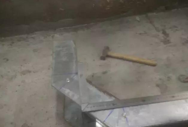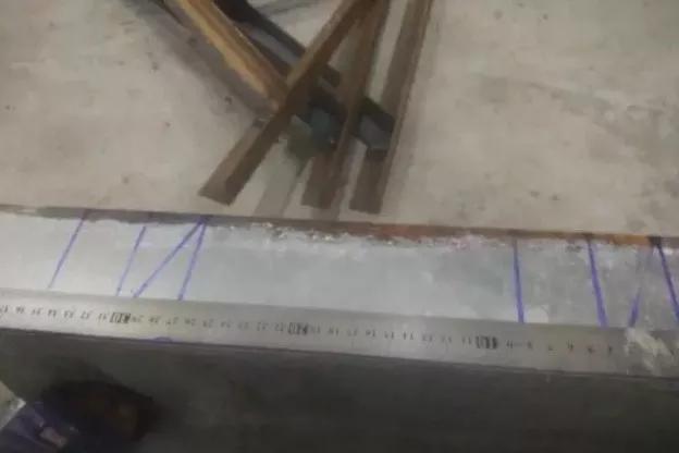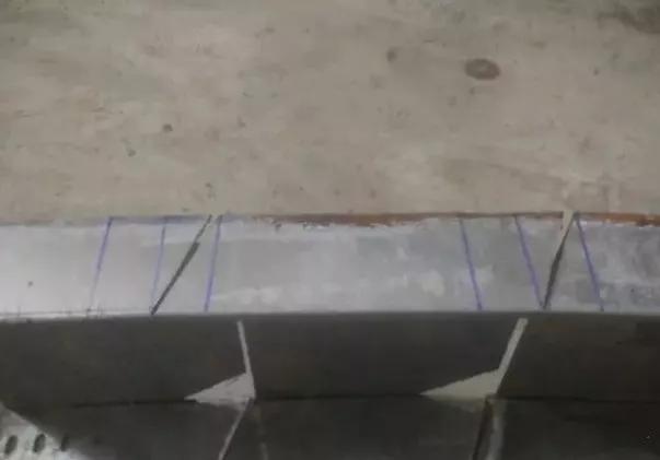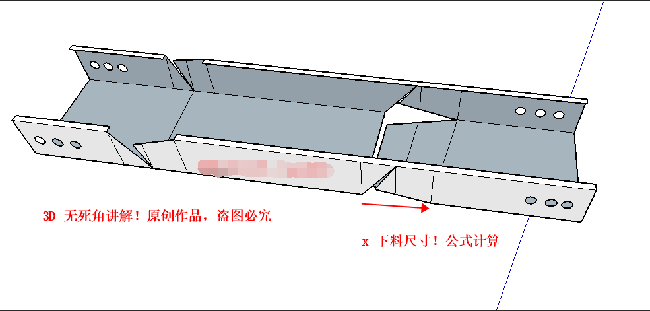 這已經(jīng)是切割完成的電纜橋架了,大家需要注意畫線的地方,中間線與斜線交匯處還有一點(diǎn)不不能切斷的,那是電纜橋架邊寬的那一點(diǎn)折彎回來的!