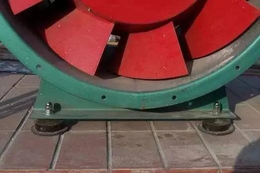 1)風機減振采用橡膠墊減振,橡膠墊全部露在瓷磚面上,符合要求。