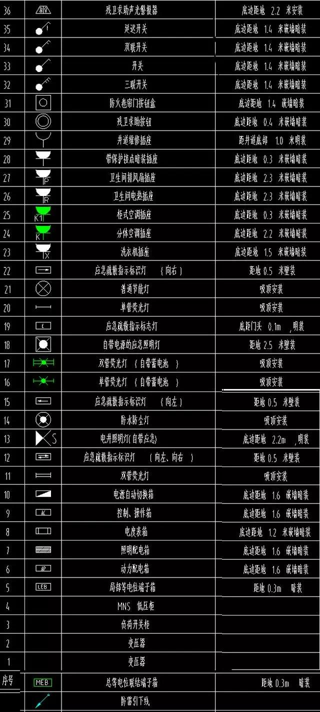 下面就給大家列出最常用的水電圖紙圖例: