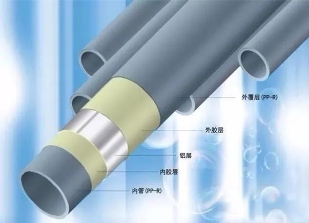 鋁塑復(fù)合管是最早替代鑄鐵管的供水管,其基本構(gòu)成應(yīng)為五層,即由內(nèi)而外依次為塑料、熱熔膠、鋁合金、熱熔膠、塑料。