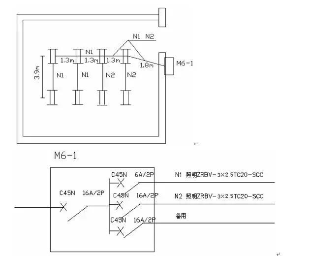 表示:N1回路,3根4mm2的銅芯聚氯乙烯塑料絕緣線,穿DN20的焊接鋼管沿地板敷設