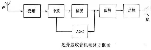 例如上圖:無線信號從左邊天線W處輸入,從左向右依次經(jīng)變頻、中放、檢波、低放、功放,最后從揚聲器BL輸出聲音。但圖中AGC(自動增益控制電路)作為反饋電路,其走向從右到左。也就是說,反饋電路作為將輸出信號的一部分或全部,反過來回到輸入端,其走向與主電路的走向相反。