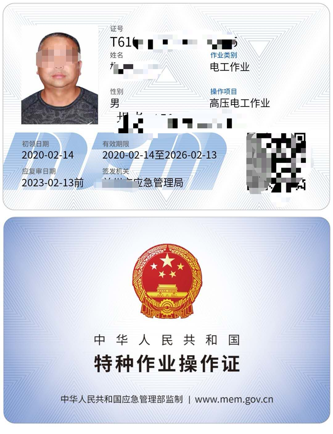 電工操作證,也稱電工上崗證,即特種作業人員操作證(電工),從事電氣設備安裝、維修等工作必須持有的證件,是經過國家安全生產相關培訓和注冊的證明。電工操作證分為高壓和低壓,作業電壓一千伏以上用高壓,作業電壓一千伏以下用低壓。