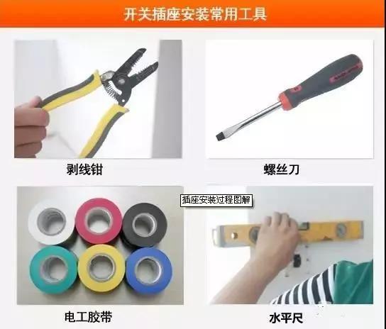 開關插座安裝工具:測量要用的卷尺(但水平尺也可以進行測量的),線墜,鉆孔時要用的電鉆和扎錐,手用絕緣手套和剝線鉗等。