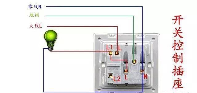 既然開關控制燈,控制插座我們就讓火線進開關的L,然后開關的L1出來分別進燈和插座的L。這種接線方法就可以實現開關控制燈和插座。