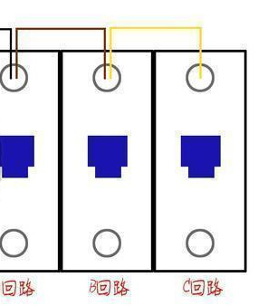 這里A,B,C三個回路的斷路器,都需要從主開關取進線。于是就從主開關的負載端引出三根電線——這是常規接法。
