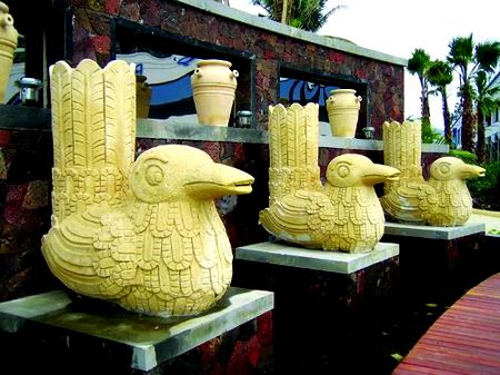 高砂巖雕塑是指壓縮小,起伏大,接近圓雕,甚至半圓雕的一種形式,這種砂巖雕塑明暗對比強烈,視覺效果突出;淺砂巖雕塑壓縮大,起伏小,它既保持了一種建筑式的平面性,又具有一定的體量感和起伏感;線刻是繪畫與雕塑的結合,它靠光影產(chǎn)生,以光代筆,甚至有一些微妙的起伏,給人一種淡雅含蓄的感覺。