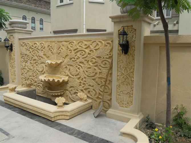 砂巖雕塑是用壓縮的辦法來處理對象,靠透視等因素來表現(xiàn)三維空間,并只供一面或兩面觀看。砂巖雕塑一般是附屬在另一平面上的,因此在建筑上使用更多,用具器物上也經(jīng)常可以看到。由于其壓縮的特性,所占空間較小,所以適用于多種環(huán)境的裝飾。
