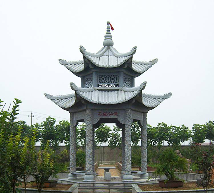 3、石亭子的色彩也要注意,最好配合其五行之色,忌相克之色,最忌藍瓦白身,黑色更是一大忌;