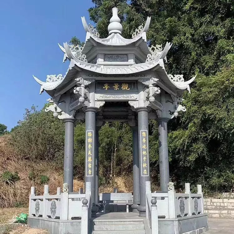 顯然石亭子越來越融入人們的生活之中,成為人們生活中不可缺少的一道靚麗風景。自古始,石亭子一直出現在各大園林中,迄今為止,石亭子任然是園林景觀中的主流建筑,我國的園林建設中幾乎少不了石亭子的出現,亭子在中國園林的意境中起到很重要的作用,元人有兩句詩“江山無限景,都取一亭中”,這就是亭子的作用,就是把外界大空間的無限景色都吸收進來。