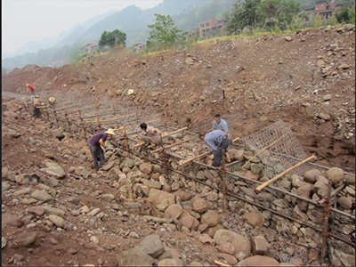 2.固腳作用在坡腳或是山腳等位置使用該結構,可以起到固腳的作用,防止水流沖刷或其他原因帶來的破壞,因此,該結構也被稱為鉛絲石籠護腳