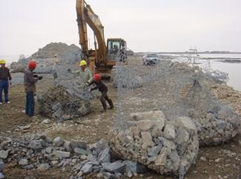3、鋼絲材質。鋼絲選用具有一定強度和韌性的低碳鋼絲,強度太高則容易在編織的時候斷裂,強度太低又無法達到設計的防沖刷力。滿足這一要求的鋼絲強度范圍為:350MPa-550MPa,延伸率不低于12%。