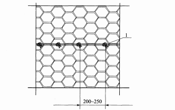 2) 封蓋網與網身、間隔網間相交邊框線,每間隔200mm~ 250mm綁扎一道。