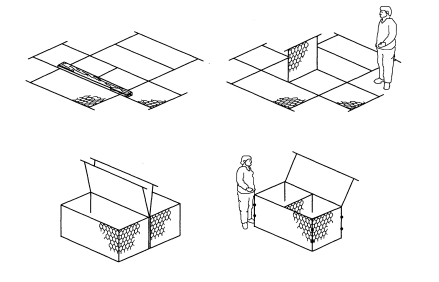 ② 拉直邊網片、端網片和隔片,組裝時確保所有折縫位置正確,相鄰綠濱墊可靠連接。