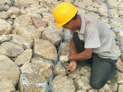 格賓網(wǎng)是由重型六角網(wǎng)機編織而成的網(wǎng),格賓網(wǎng)墊、格賓護墊、雷諾護墊均由它組合形成。網(wǎng)格絞合處為三扭麻花狀六邊形結構。格賓網(wǎng)護坡時結構較薄,被稱為格賓網(wǎng)墊、格賓護墊或者雷諾護墊。格賓網(wǎng)用于固腳或者擋土墻時,結構通常較厚,被稱為格賓擋墻或者格賓護腳。