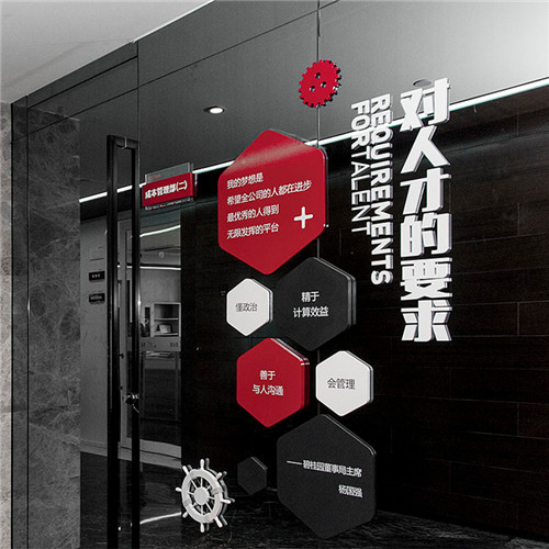 合理布局:企業文化墻不是獨立存在的,它在辦公區域中處于一定的位置,因此,我們必須注意把它放在一個合理的位置,有限的空間,優化布局,為以后的設計打下基礎。